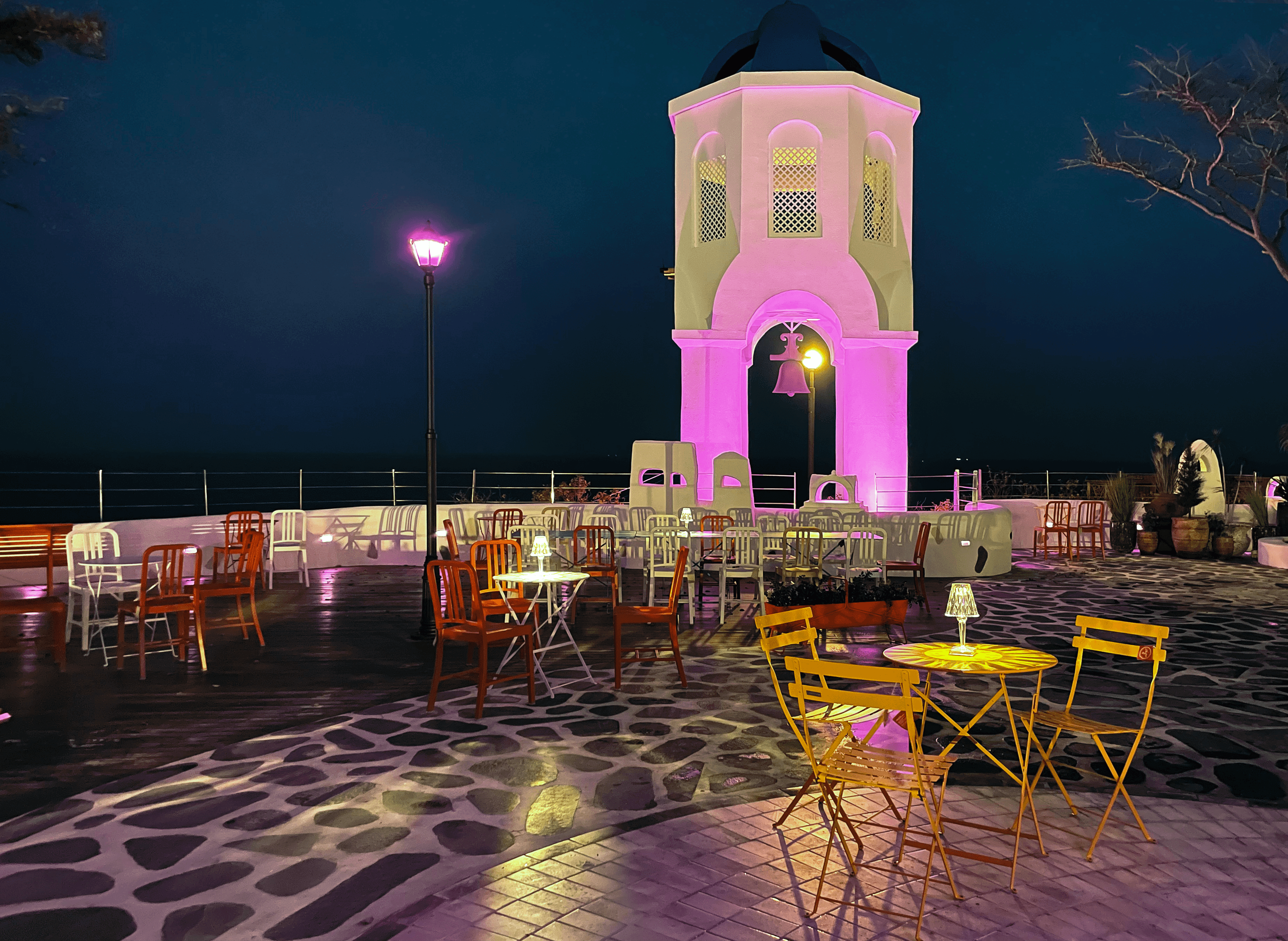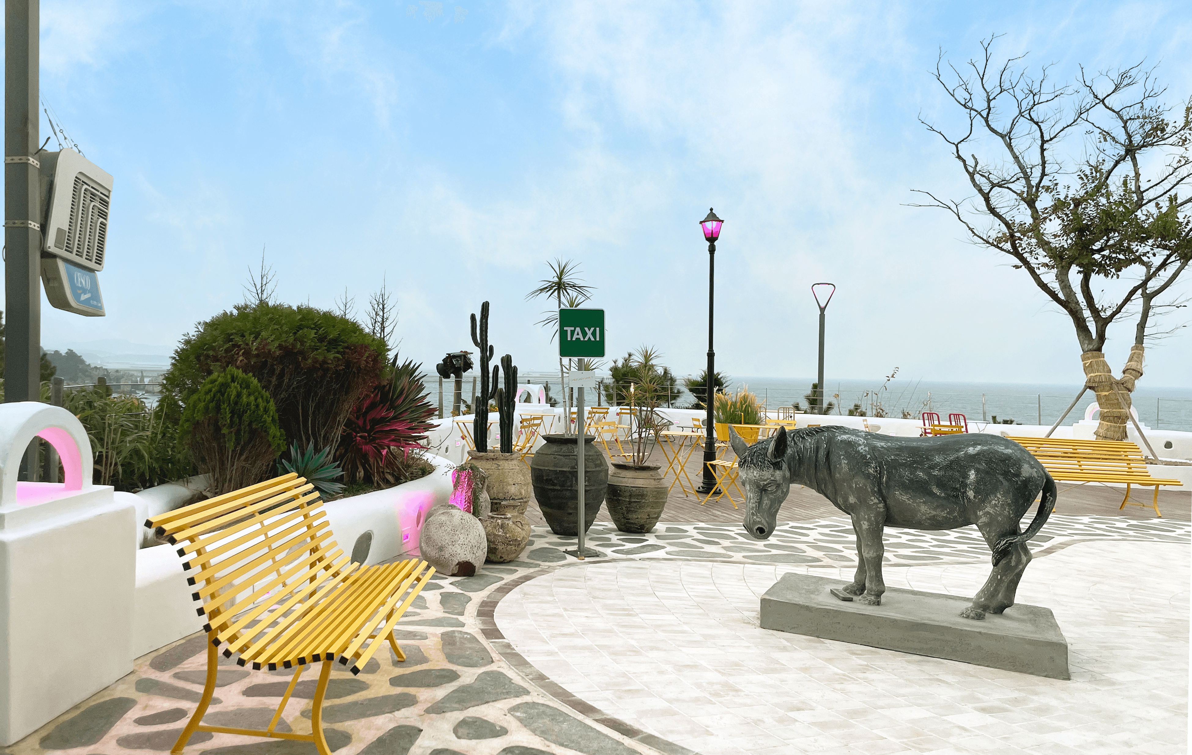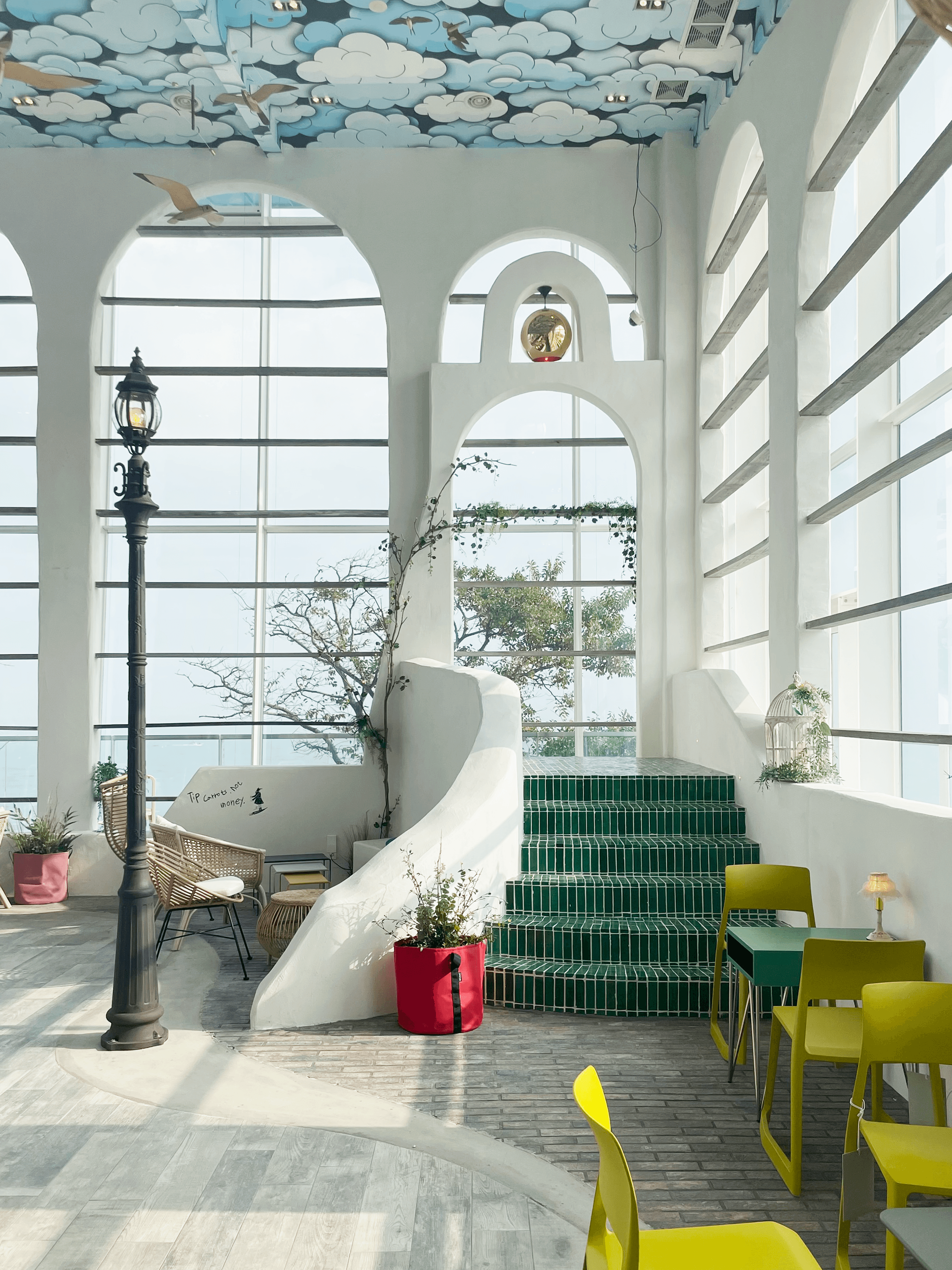 A warm and relaxing dining environment enhanced with natural textures, calm lighting, and the coastal ambience of Samcheok.
