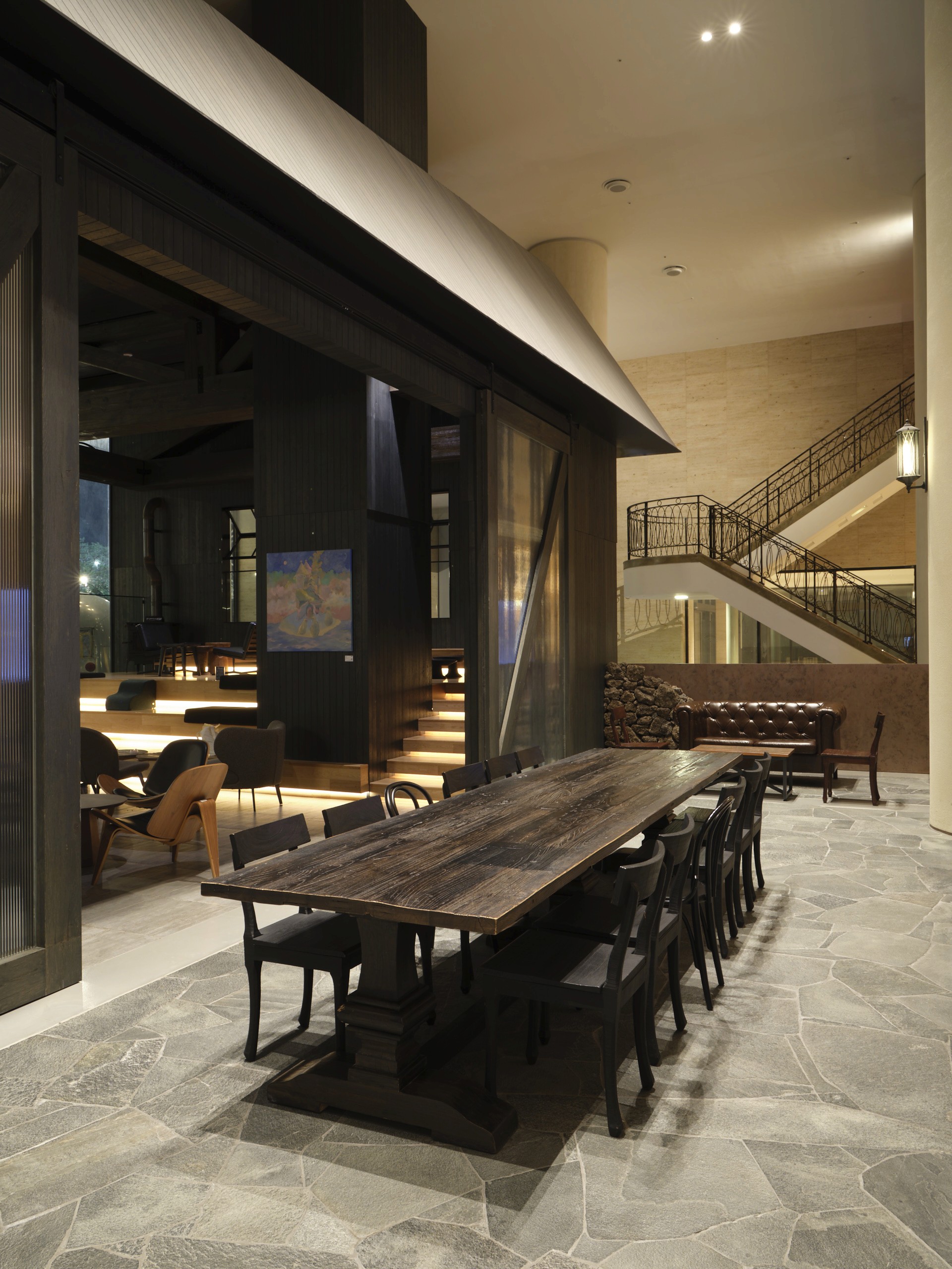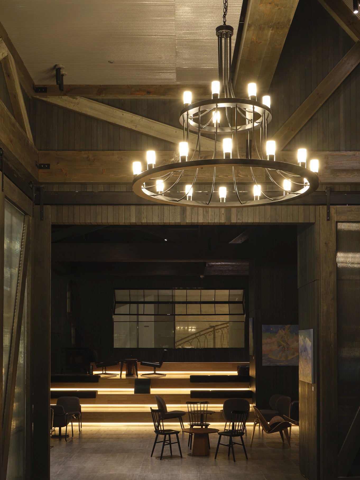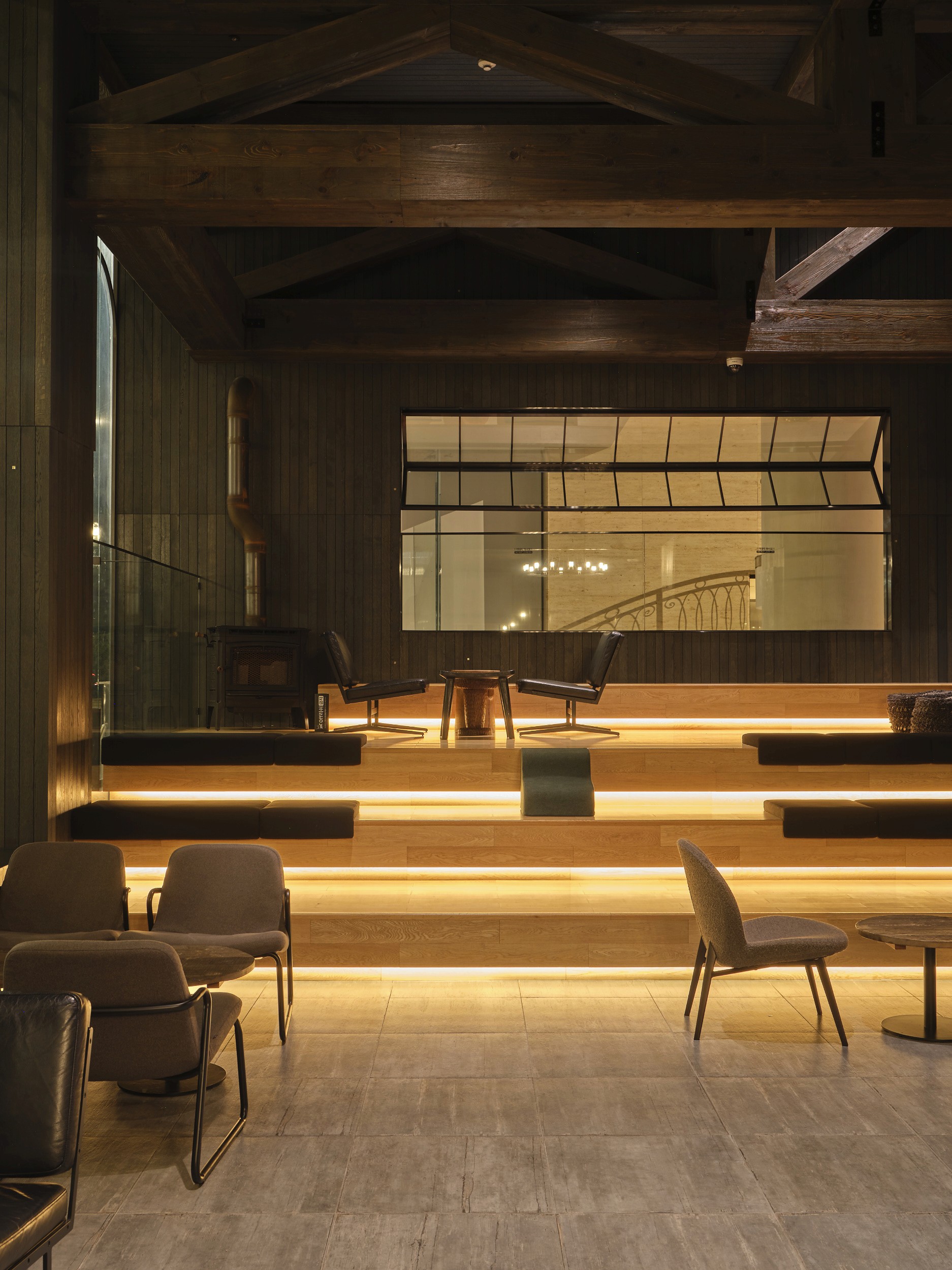 A playful yet refined lobby created to welcome both guests and pets through durable finishes and warm, friendly colors.